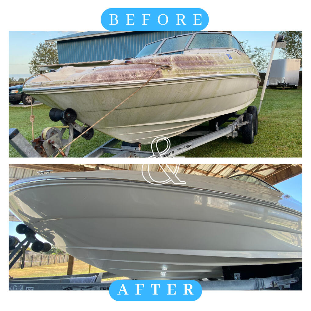 We transformed this boat from dull and weathered to showroom-quality shine. Whether you need routine maintenance, detailing, or major repairs, our team is ready to deliver top-tier results. Trust us to get your boat or equipment back in peak condition!